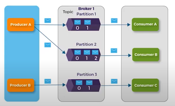 - Producer: producer들은 message를 topic으로 보내는데, topic 별로 어느 parition에 message를 보낼 것인지 또한 결정한다.